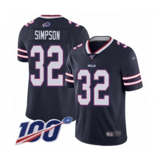 >Men's Buffalo Bills #32 O. J. Simpson Limited Navy Blue Inverted Legend 100th Season Football Jersey