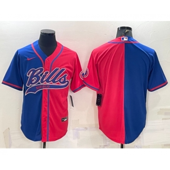 >Men's Buffalo Bills Blank Royal Red Split With Patch Cool Base Stitched Baseball Jersey