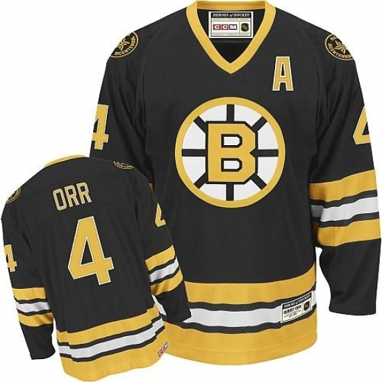 Men's CCM Boston Bruins #4 Bobby Orr Authentic Black Throwback NHL Jersey