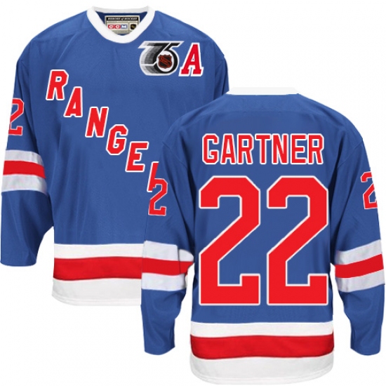Men's CCM New York Rangers #22 Mike Gartner Premier Royal Blue 75TH Throwback NHL Jersey