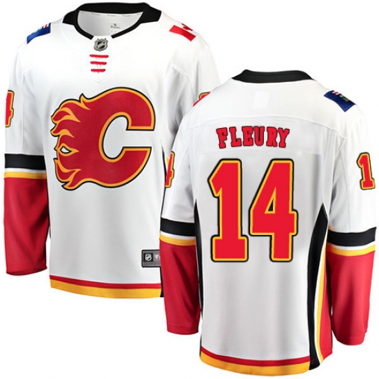 Home>NHL>Calgary Flames>Theoren Fleury>Men's Calgary Flames #14 Theoren Fleury Fanatics Branded White Away Breakaway NHL Jersey
