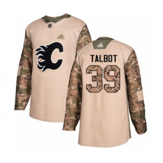 >Men's Calgary Flames #39 Cam Talbot Authentic Camo Veterans Day Practice Hockey Jersey