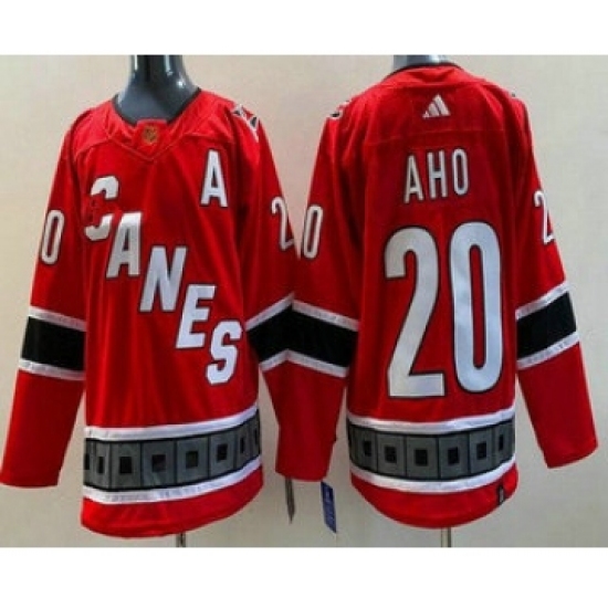 Men's Carolina Hurricanes #20 Sebastian Aho Red 2022 Reverse Retro Authentic Jersey