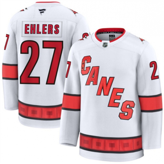 Men's Carolina Hurricanes #27 Nikolaj Ehlers White 2024-25 Away Stitched Hockey Jersey