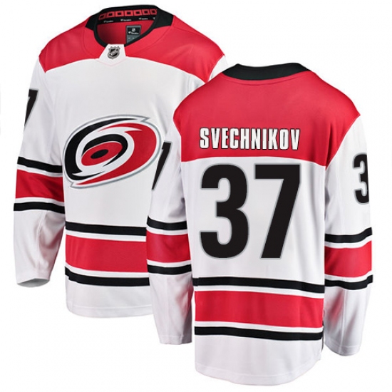 Men's Carolina Hurricanes #37 Andrei Svechnikov Authentic White Away Fanatics Branded Breakaway NHL Jersey