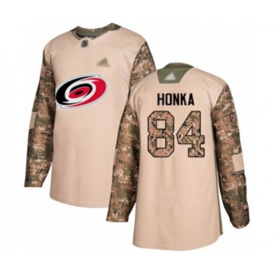 >Men's Carolina Hurricanes #84 Anttoni Honka Authentic Camo Veterans Day Practice Hockey Jersey