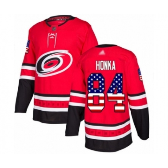 >Men's Carolina Hurricanes #84 Anttoni Honka Authentic Red USA Flag Fashion Hockey Jersey