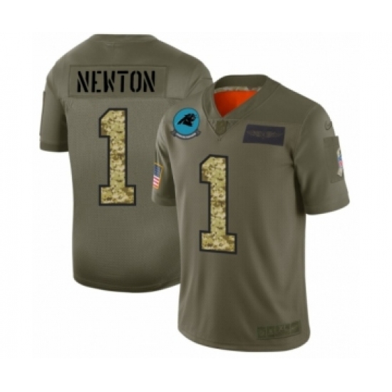 Men's Carolina Panthers #1 Cam Newton 2019 Olive Camo Salute to Service Limited Jersey