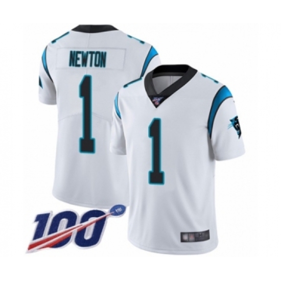 Men's Carolina Panthers #1 Cam Newton White Vapor Untouchable Limited Player 100th Season Football Jersey
