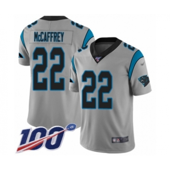 Men's Carolina Panthers #22 Christian McCaffrey Silver Inverted Legend Limited 100th Season Football Jersey