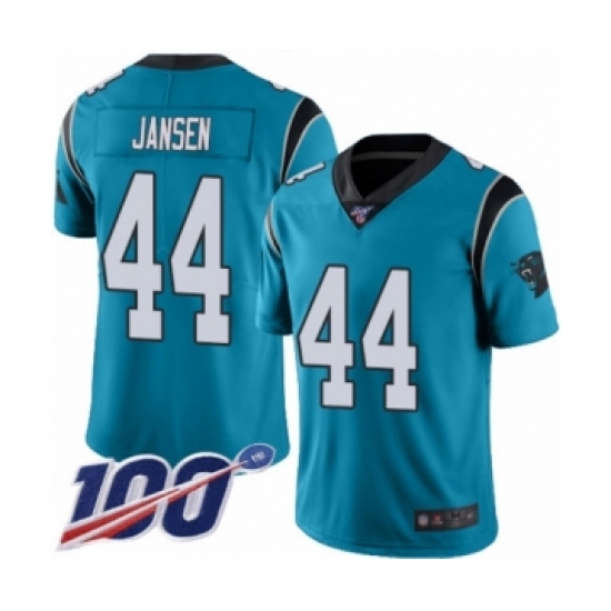 >Men's Carolina Panthers #44 J.J. Jansen Limited Blue Rush Vapor Untouchable 100th Season Football Jersey