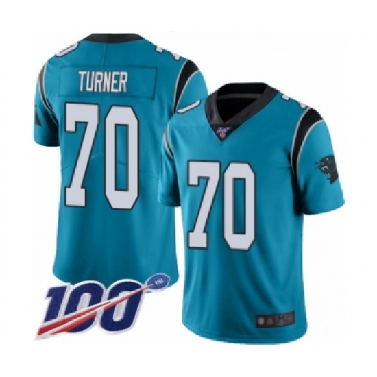 >Men's Carolina Panthers #70 Trai Turner Blue Alternate Vapor Untouchable Limited Player 100th Season Football Jersey