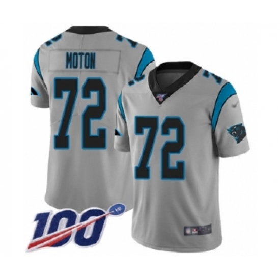 Men's Carolina Panthers #72 Taylor Moton Silver Inverted Legend Limited 100th Season Football Jersey