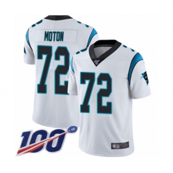 Men's Carolina Panthers #72 Taylor Moton White Vapor Untouchable Limited Player 100th Season Football Jersey