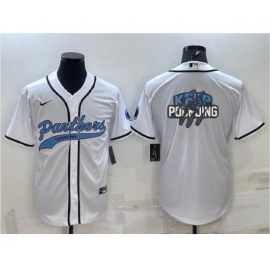 Men's Carolina Panthers White Team Big Logo With Patch Cool Base Stitched Baseball Jersey