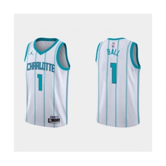 >Men's Charlotte Hornets #1 LaMelo Ball 2022-23 White Association Edition Stitched Basketball Jersey