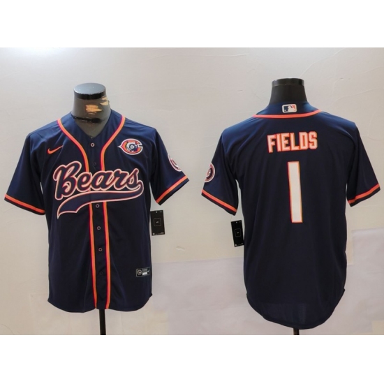 Men's Chicago Bears #1 Justin Fields Navy Throwback With Cool Base Stitched Baseball Jerseys