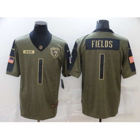 >Men's Chicago Bears #1 Justin Fields Nike Olive 2021 Salute To Service Limited Player Jersey