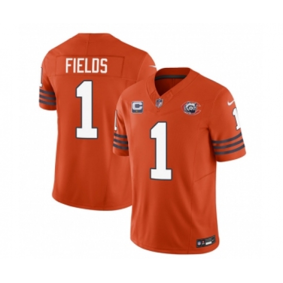 Men's Chicago Bears #1 Justin Fields Orange 2023 F.U.S.E. 1-star C Throwback Limited Football Stitched Game Jersey