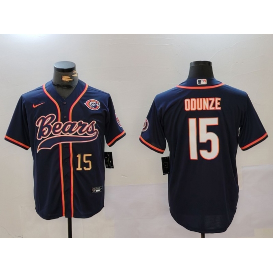 Men's Chicago Bears #15 Rome Odunze Navy Throwback With Cool Base Stitched Baseball Jerseys