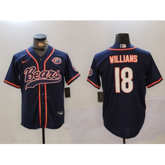 >Men's Chicago Bears #18 Caleb Williams Navy Throwback With Cool Base Stitched Baseball Jersey