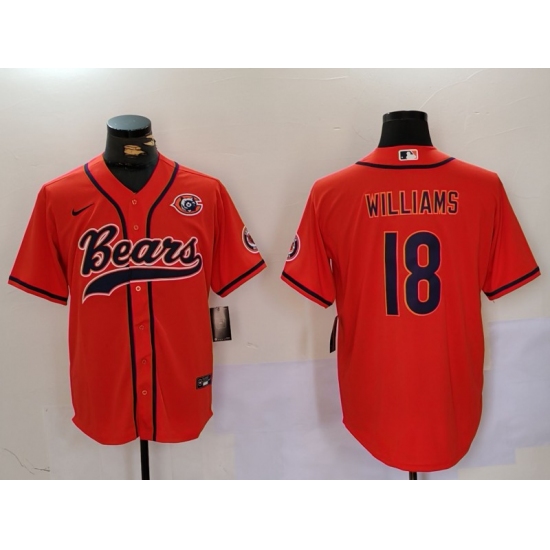 >Men's Chicago Bears #18 Caleb Williams Orange Throwback With Cool Base Stitched Baseball Jersey