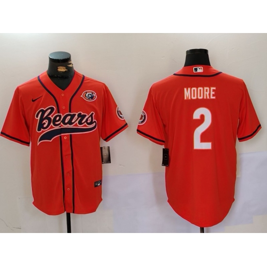 Men's Chicago Bears #2 DJ Moore Orange Throwback With Cool Base Stitched Baseball Jersey