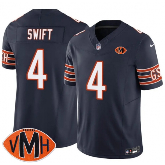 >Men's Chicago Bears #4 D'Andre Swift Navy 2025 F.U.S.E. With Illinois and VMH Vapor Untouchable Limited Football Stitched Jersey