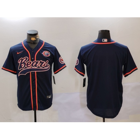 Men's Chicago Bears Blank Navy Blue With Cool Base Stitched Baseball Jersey