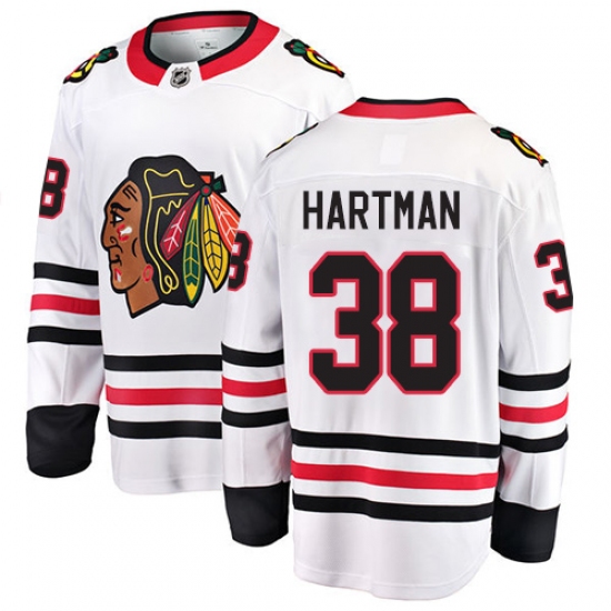 Home>NHL>Chicago Blackhawks>Ryan Hartman>Men's Chicago Blackhawks #38 Ryan Hartman Fanatics Branded White Away Breakaway NHL Jersey