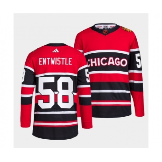 Men's Chicago Blackhawks #58 MacKenzie Entwistle Red Black 2022 Reverse Retro Stitched Jersey