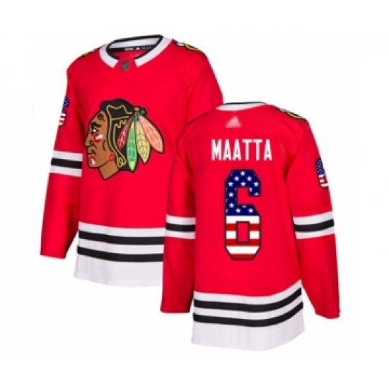 Men's Chicago Blackhawks #6 Olli Maatta Authentic Red USA Flag Fashion Hockey Jersey