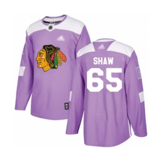 >Men's Chicago Blackhawks #65 Andrew Shaw Authentic Purple Fights Cancer Practice Hockey Jersey
