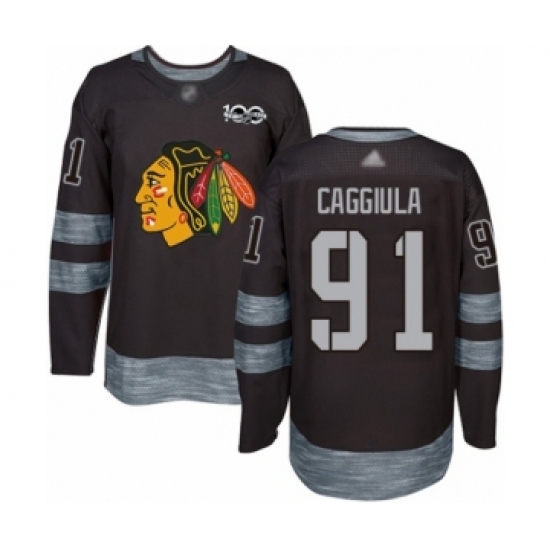 Men's Chicago Blackhawks #91 Drake Caggiula Authentic Black 1917-2017 100th Anniversary Hockey Jersey
