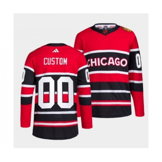 >Men's Chicago Blackhawks Custom Red Black 2022 Reverse Retro Stitched Jersey