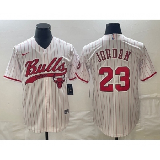 Men's Chicago Bulls #23 Michael Jordan White Pinstripe Cool Base Stitched Baseball Jersey
