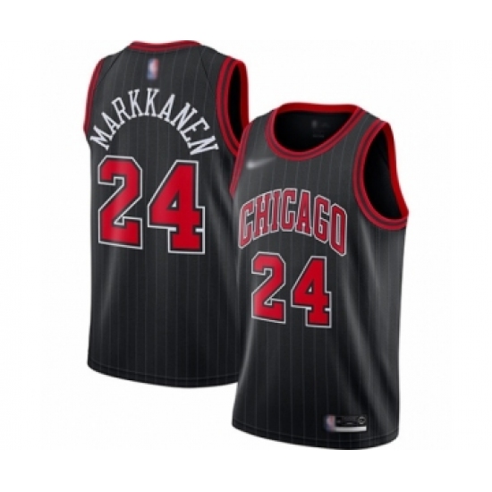 >Men's Chicago Bulls #24 Lauri Markkanen Authentic Black Finished Basketball Jersey - Statement Edition