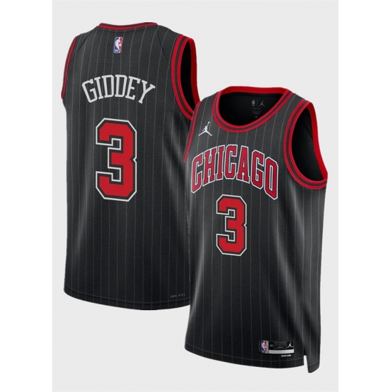 Men's Chicago Bulls #3 Josh Giddey Black Statement Edition Stitched Basketball Jersey