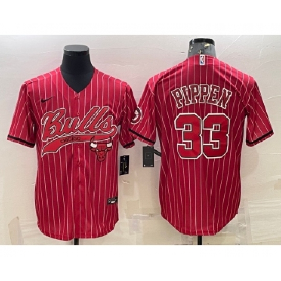 >Men's Chicago Bulls #33 Scottie Pippen Red With Patch Cool Base Stitched Baseball Jerseys