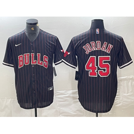 Men's Chicago Bulls #45 Michael Jordan Black Pinstripe Cool Base Stitched Baseball Jerseys
