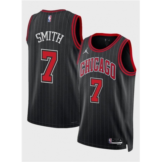 >Men's Chicago Bulls #7 Jalen Smith Black 2024 Draft Statement Edition Stitched Basketball Jersey