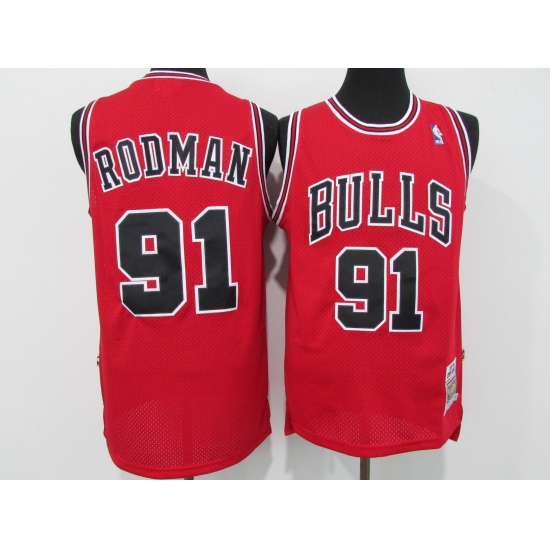 Men's Chicago Bulls #91 Dennis Rodman Authentic Red Alternate Jersey