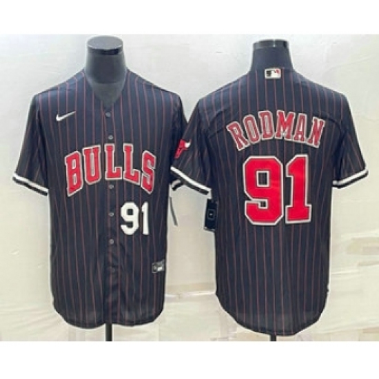 Mens Chicago Bulls #91 Dennis Rodman Number Black With Cool Base Stitched Baseball Jersey