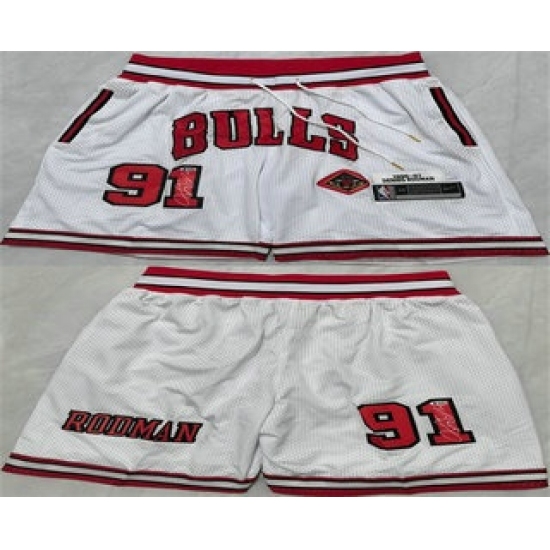 >Men's Chicago Bulls #91 Dennis Rodman White 2025 Shorts
