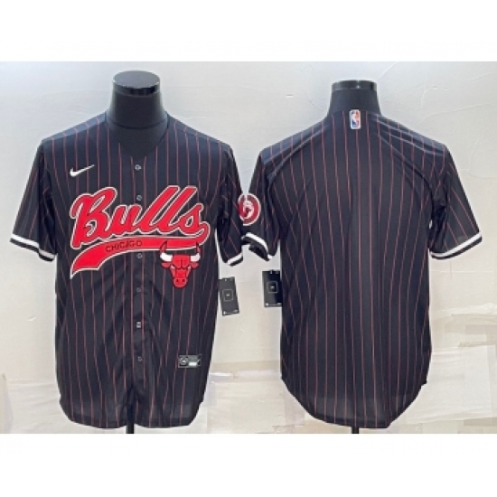 Men's Chicago Bulls Blank Black Pinstripe With Patch Cool Base Stitched Baseball Jersey