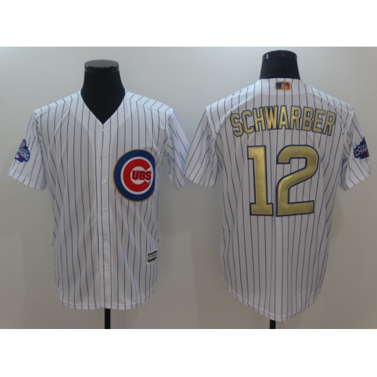 >Men's Chicago Cubs #12 Kyle Schwarber Authentic White Gold Program Flex Base Jersey