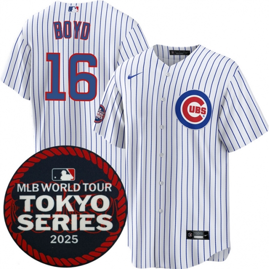 Men's Chicago Cubs #16 Matthew Boyd White 2025 World Tour Tokyo Series Home Stitched Baseball Jersey