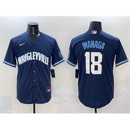 >Men's Chicago Cubs #18 Shota Imanaga Navy City Connect Stitched Baseball Jersey