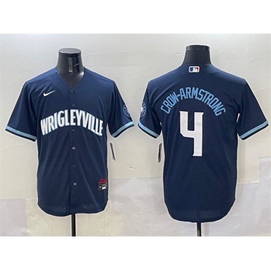 >Men's Chicago Cubs #4 Pete Crow-Armstrong Navy City Connect Stitched Baseball Jersey