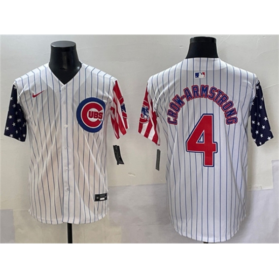 Men's Chicago Cubs #4 Pete Crow-Armstrong White Pinstripe 2025 Independence Day Vapor Premier Limited Stitched Baseball Jersey